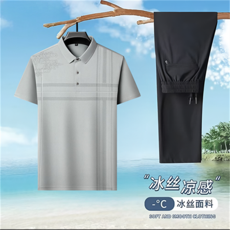 亿嘉电商供货&YJTZ807冰丝竹叶印花翻领短袖套装